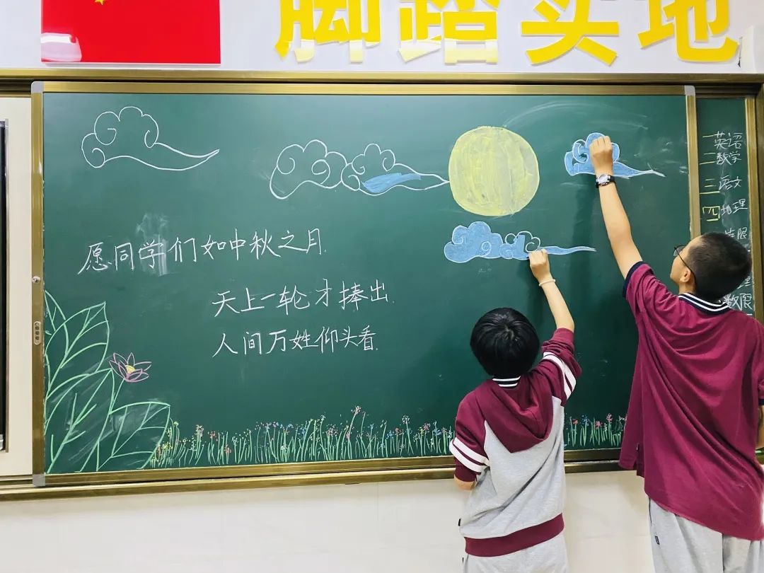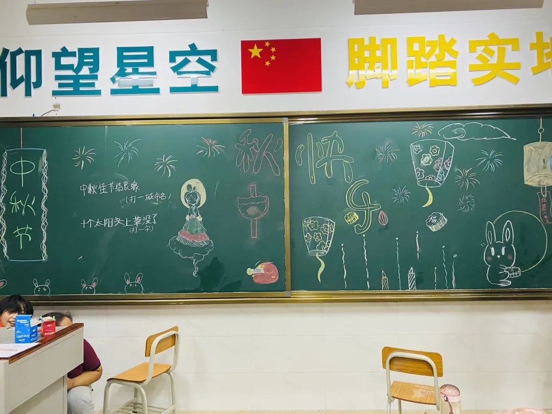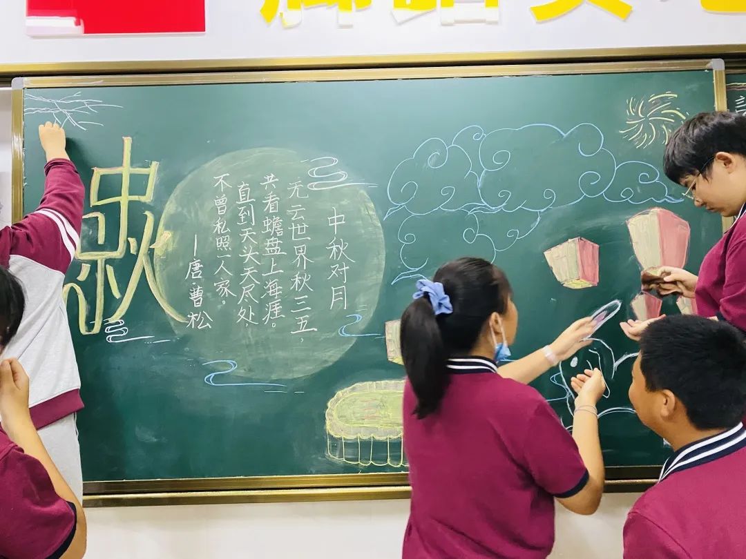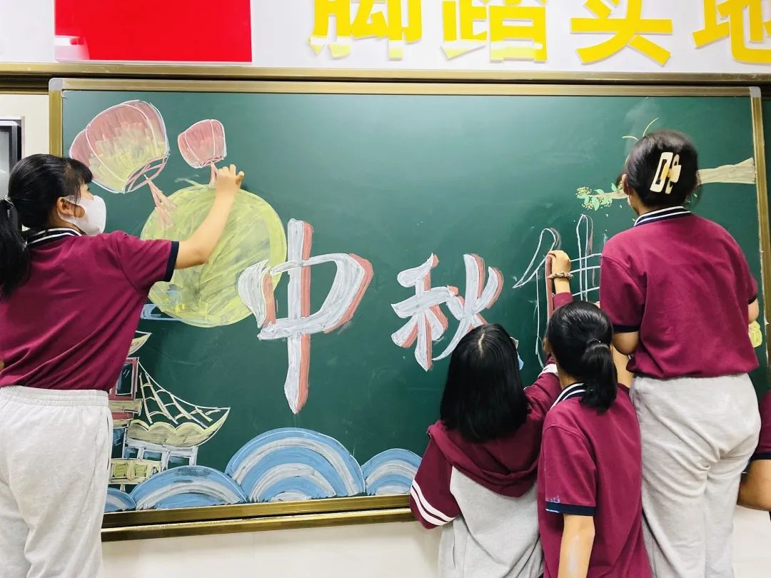 同学们积极的在布置中秋节的黑板报~