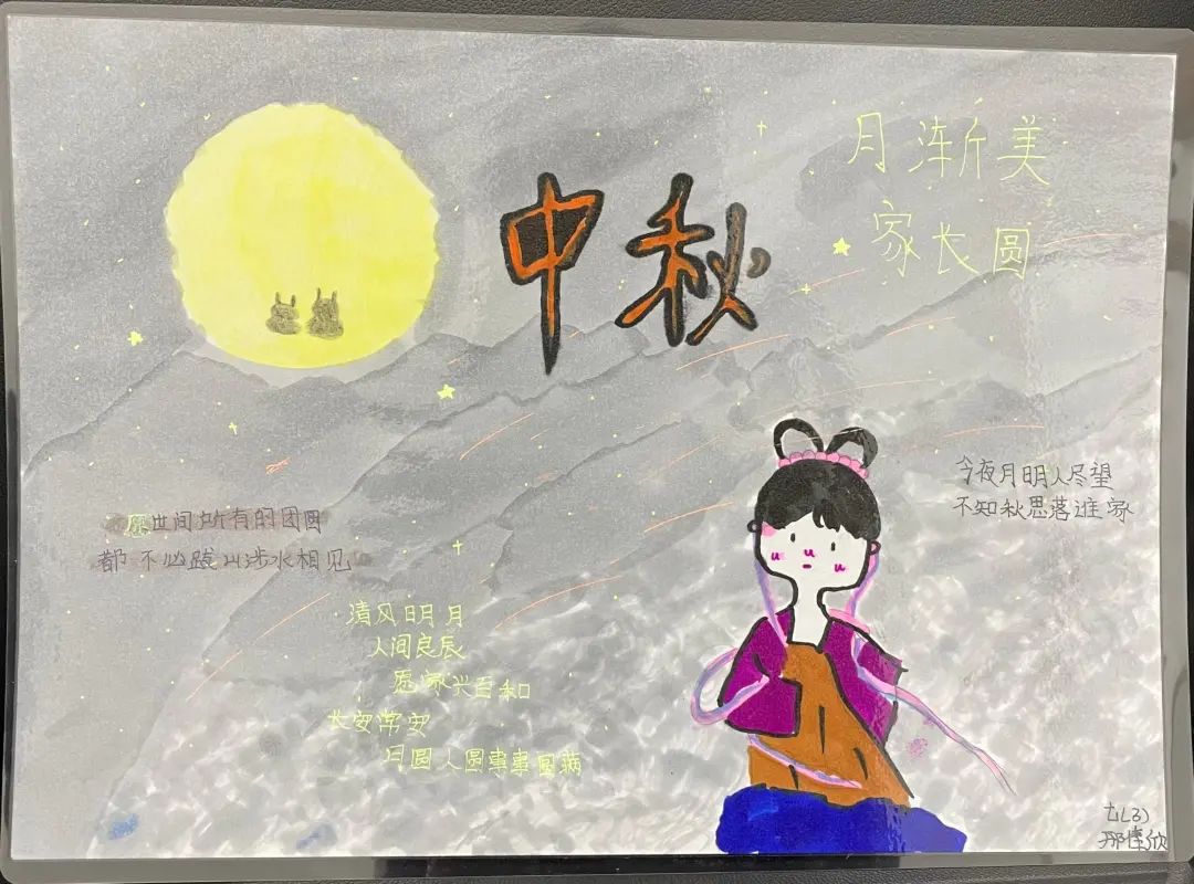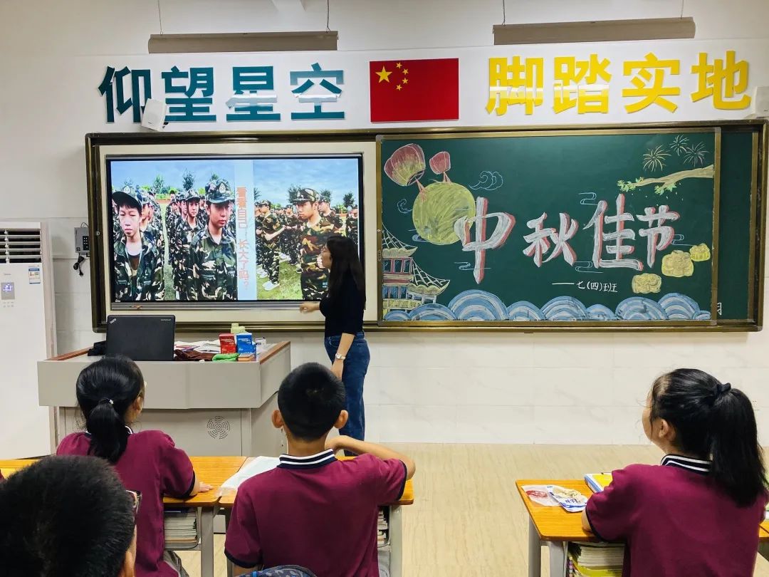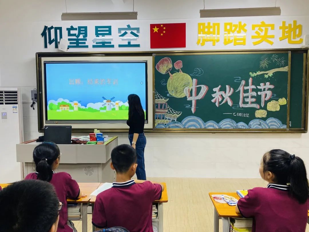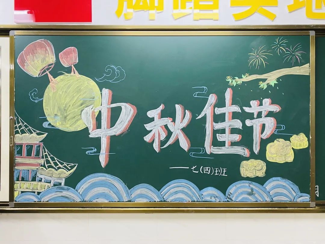 同学们积极的在布置中秋节的黑板报~