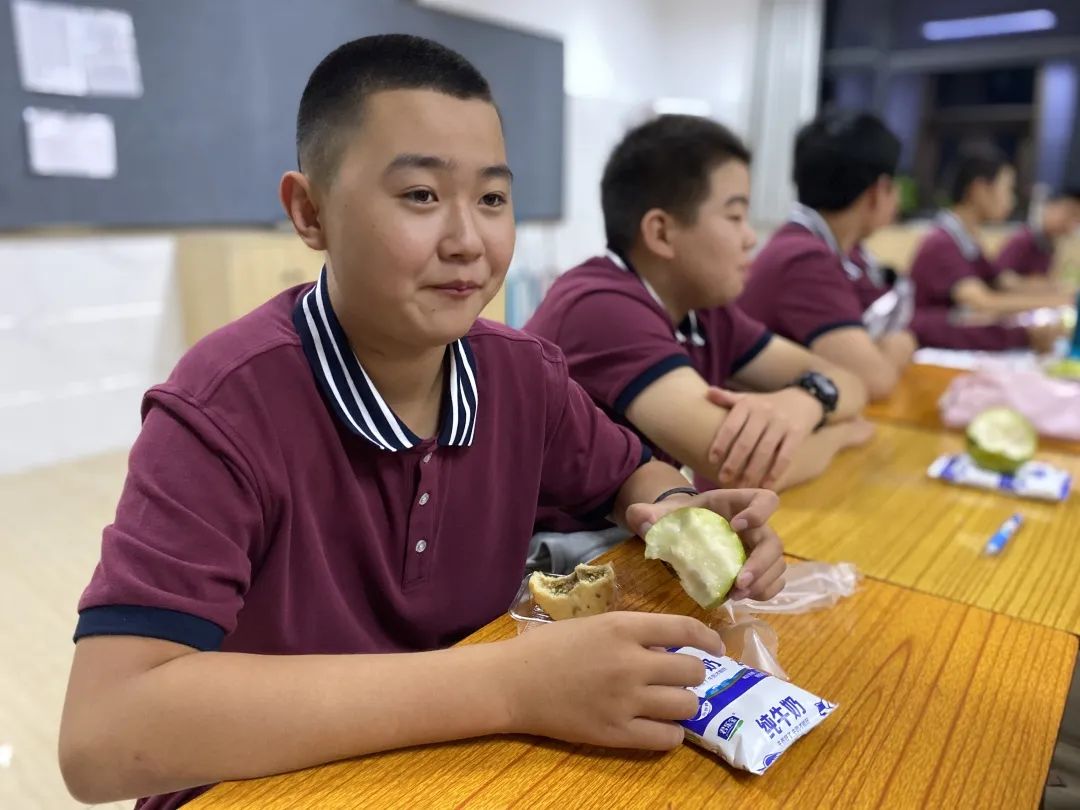 同学们大快朵颐的吃着